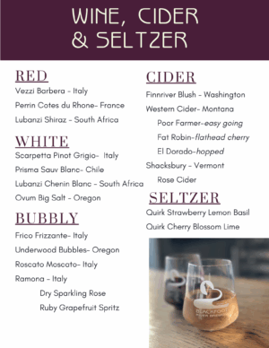 The Taproom’s Winter business hours are Mon-Thurs 2-9 pm, Fri-Sun 12-9pm, serving a great line-up of hand-crafted beer and free popcorn! We also offer featured wines, local Montana made hard cider and a variety of Non-Alcoholic beverages to choose from.
